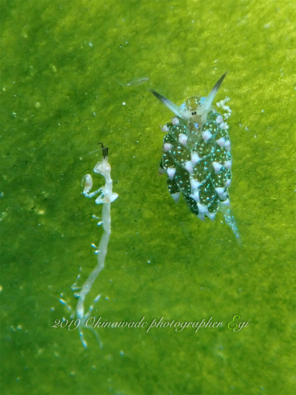 ウォーーーーーーーーこの小ささ! ヒメオオミアミかな?って、良く見たら小さいながらにあの動き!! おそらく体長2mm?大きく言っても3mmって感じかな? 普通にダイビングしてて2度と見れないサイズかもなー! しっかりと撮ってくれてありがとー!!