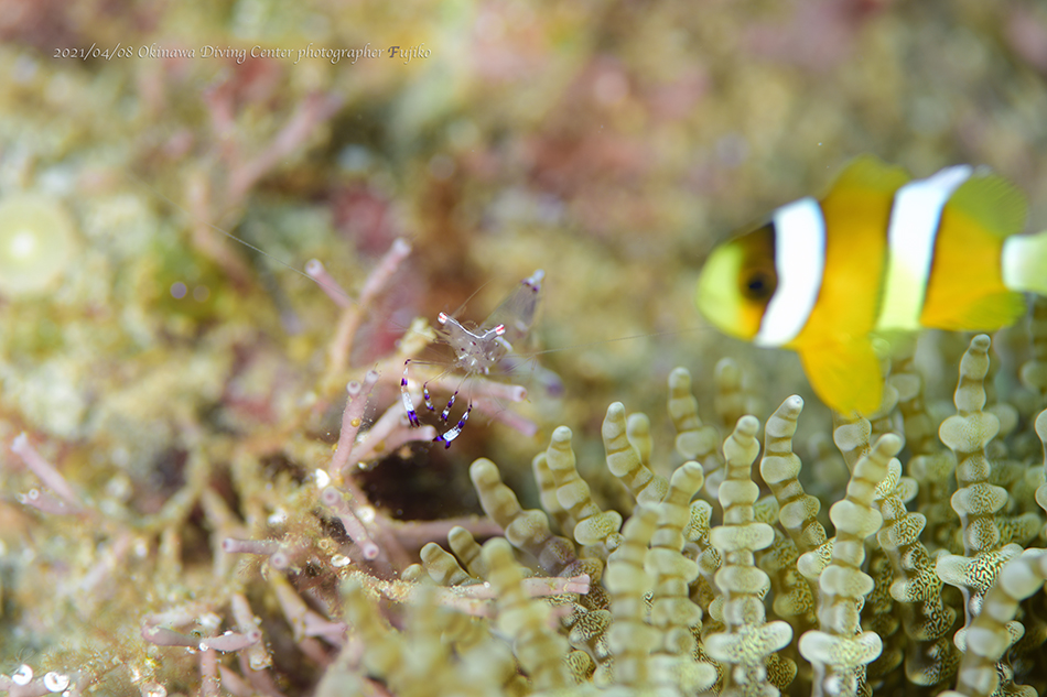 そして狙ってもなかなか撮れないクマノミとエビのコラボ!