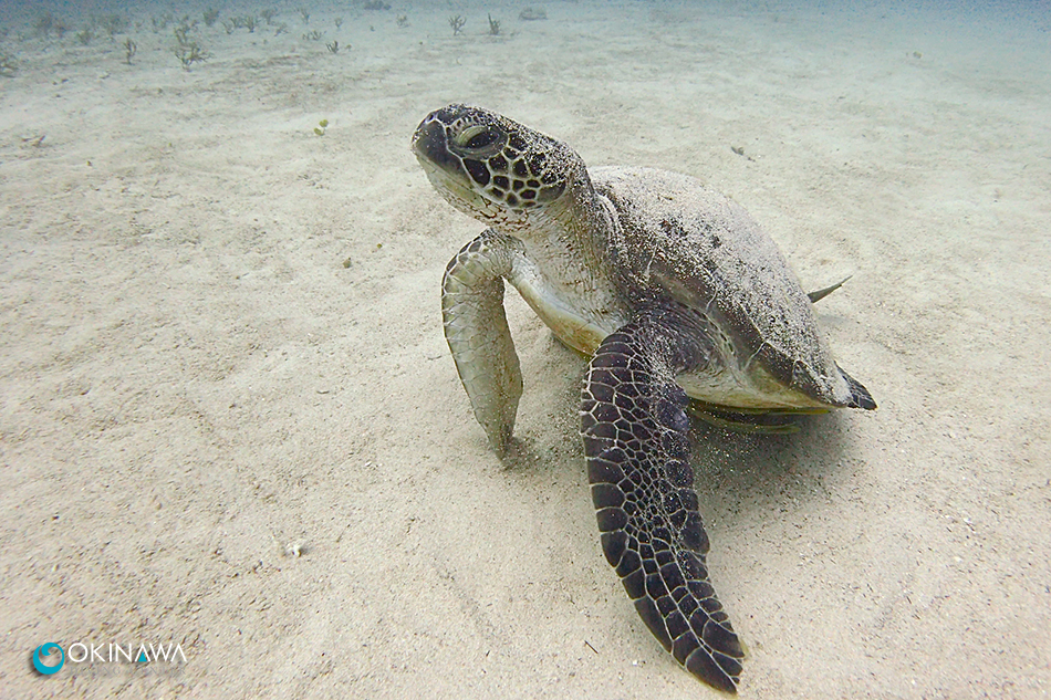 全く驚く素振りもなく、、、悠々としているアオウミガメ・・・。