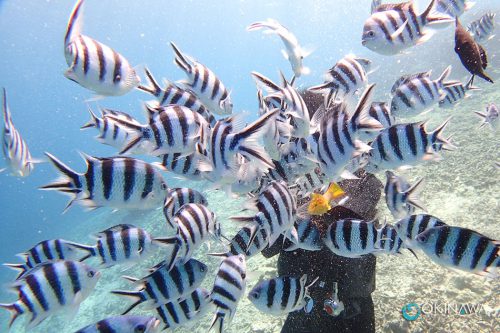 ロクセンスズメダイに襲われながら、餌付けもしちゃいました♪