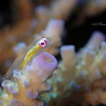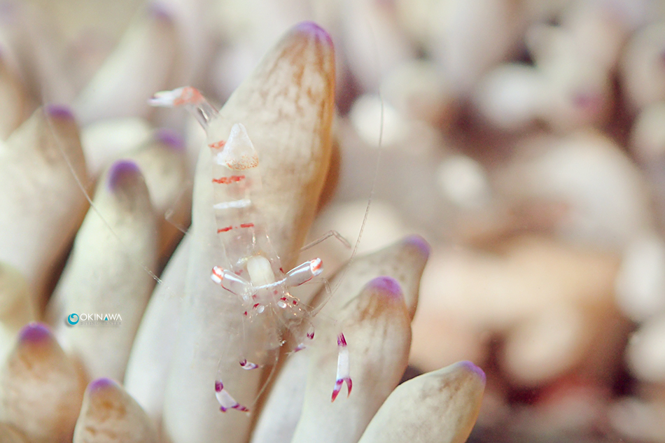 チクビイソギンチャクに付くアカホシカクレエビのお子様!