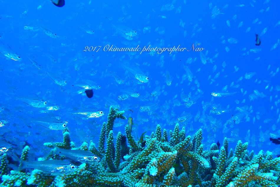スカシテンジクダイ、キンメモドキ、キンギョハナダイ、カシワハナダイ、ケラマハナダイなどなどと本当に多く普段恩納村で見れない風景は新鮮で気持ちがいいですよね!! 勿論、自分は山田も好きだけどねーーー!笑