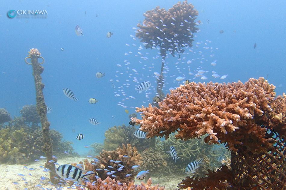 サンゴのプチ養殖場では今小さなサイズのデバスズメダイが見られています♪