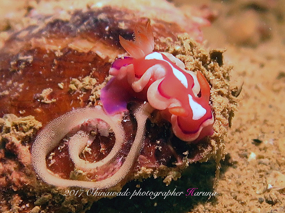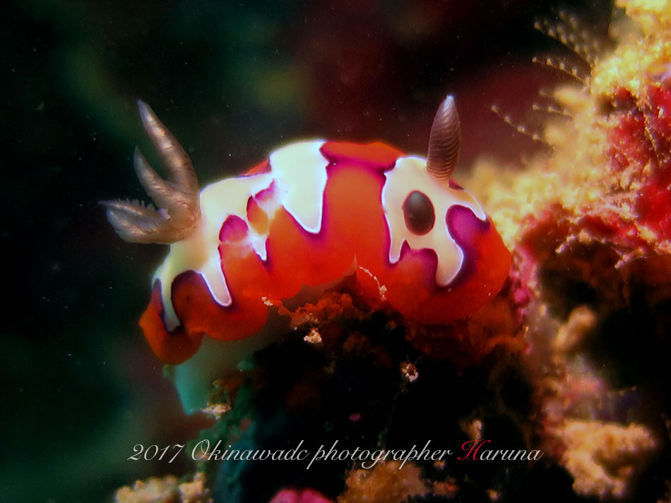 赤と白の体色が綺麗なウミウシ!