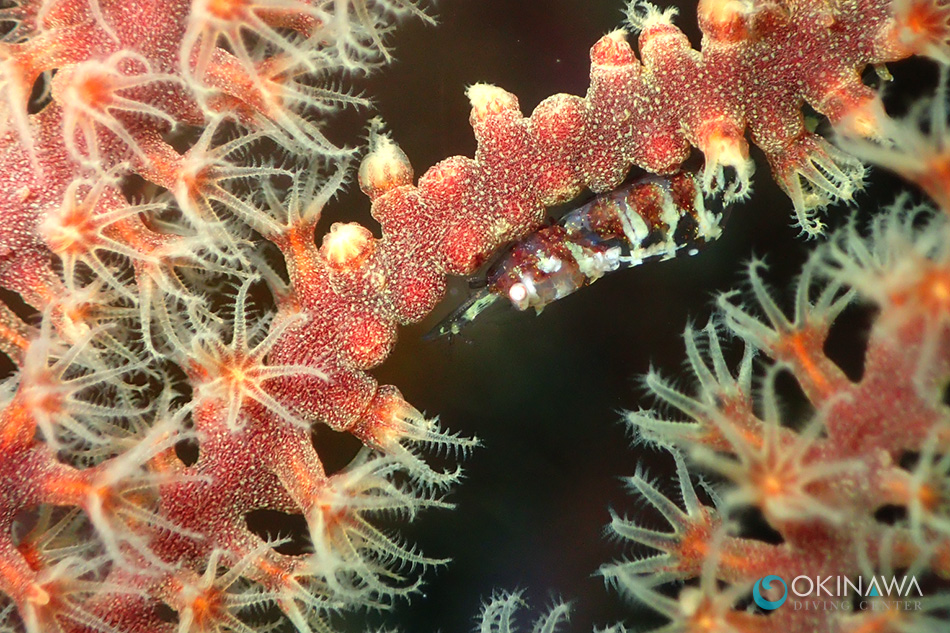 イソバナカクレエビで合っているのか・・こちらも同じ場所で見られますが、ポリプと一緒だと綺麗な額縁のよう☆