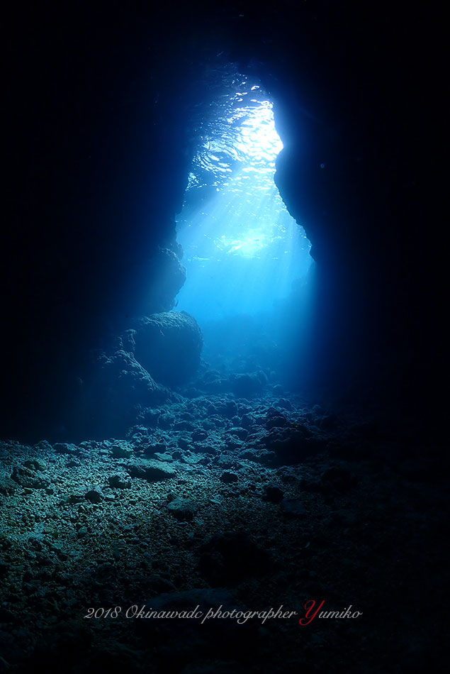 一本目の洞窟は太陽の光が差し込みとても綺麗でした。(By Yuma)
