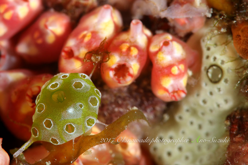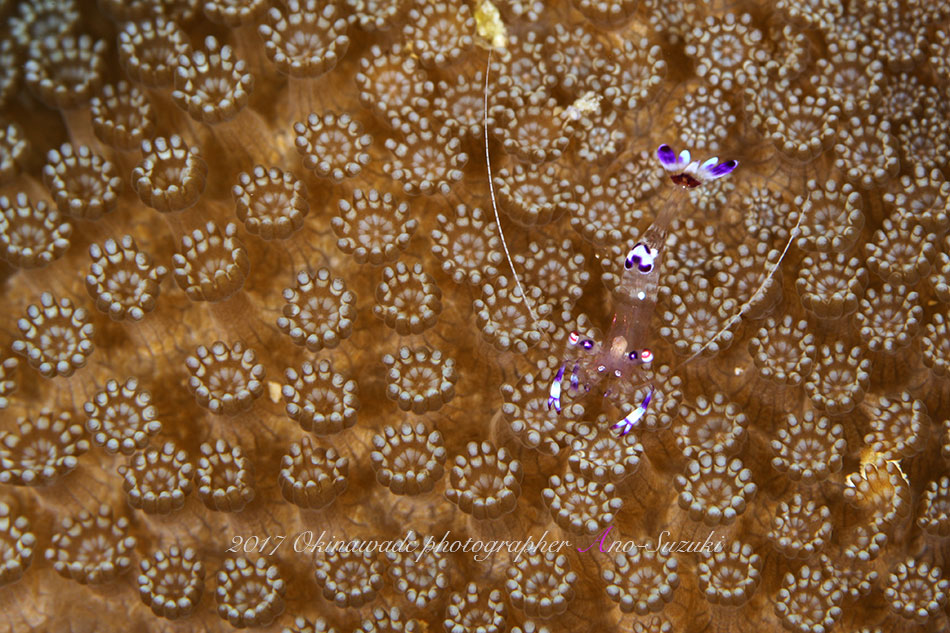 アワサンゴに乗る小さなナデシコカクレエビの子供! お花畑の上で幸せそうだなーー。 お花の下にはヤクシマカクレエビも居たりしてね。 まだ確認はしませーん。