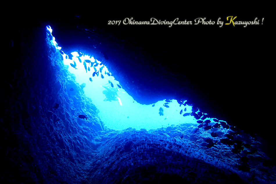 ドロップオフを水面から見下ろしたときの濃いブルーが凄いことになっています。