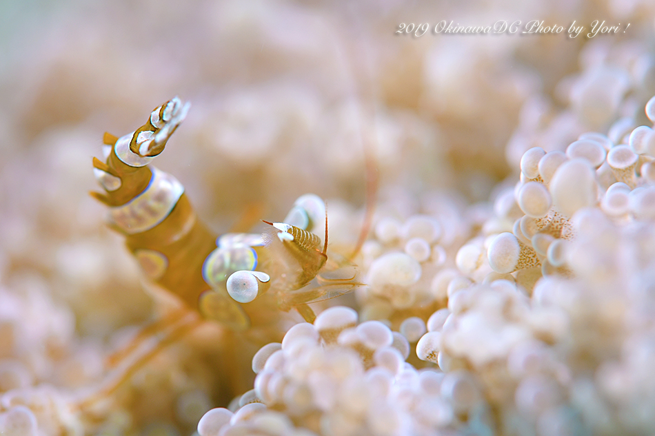 ふわふわのサンゴの上にいるモエビ、、、かわいいですねー。