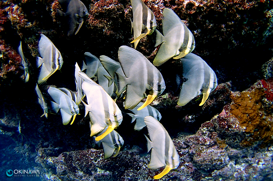洞窟前はツバメウオがぎゅっと!固まってまーす。