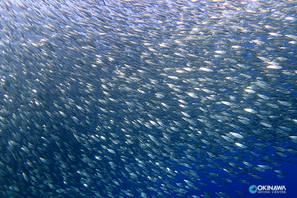 真栄田は最後はお食事中のアオウミガメ&果てしないミジュンの群れ!そして、カスミアジのアタック!