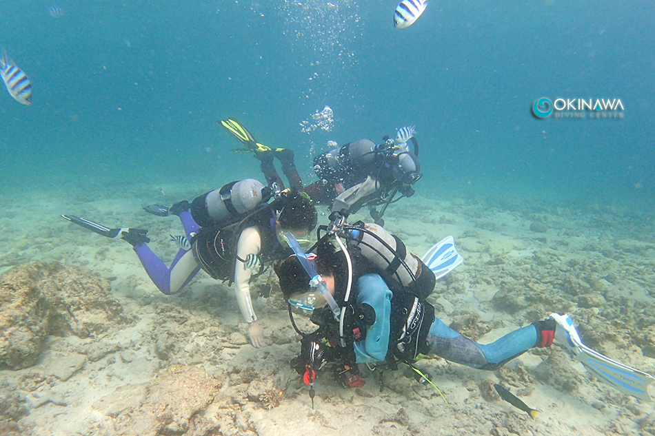 午後からは港をかえて、ホームの前兼久で洞窟と本日のメインイベントのサンゴの植え付け!