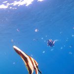 浅場のサンゴ、差し込む光、ミカヅキツバメウオと、ワイドも楽し!