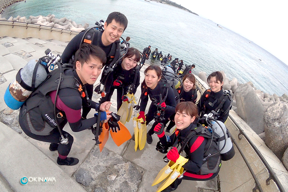 沖縄ダイビングセンター初ご来店の8名様!(本日は風邪で1名欠席ですが、明日は皆揃うよ!)