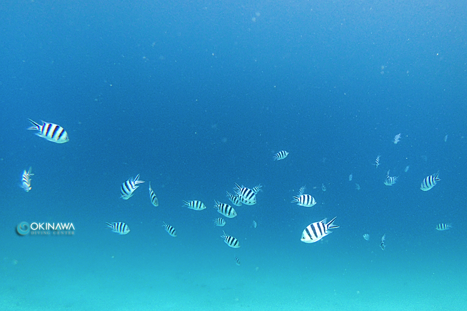 デバスズメダイ、ロクセンスズメダイ、フタスジリュウキュウスズメダイなどなど、、サンゴに群れる魚達も多い!