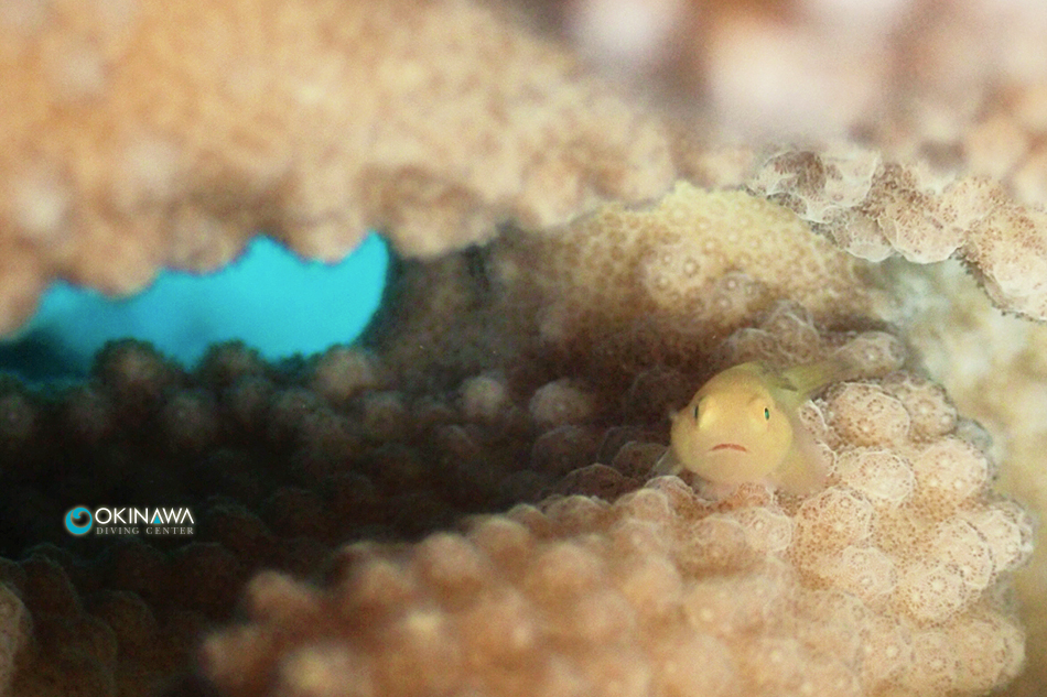 養殖サンゴの中にはかわいいダルマハゼがいっぱいです!