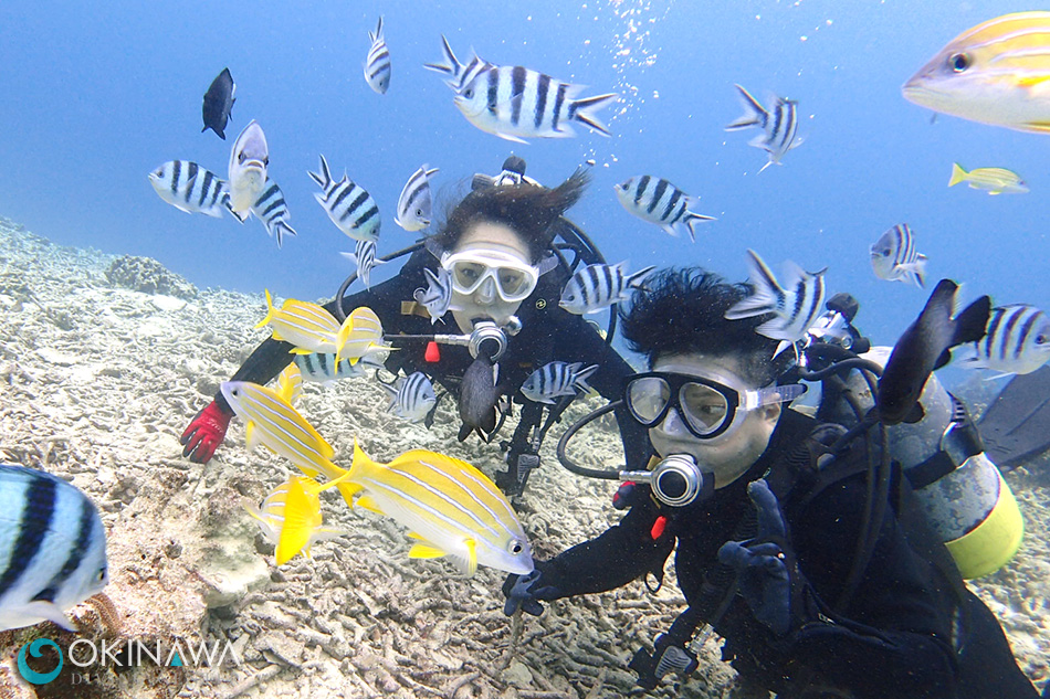 それでもサンゴの周りを彩るデバスズメダイやミスジリュウキュウスズメダイの群れは綺麗でした〜!!