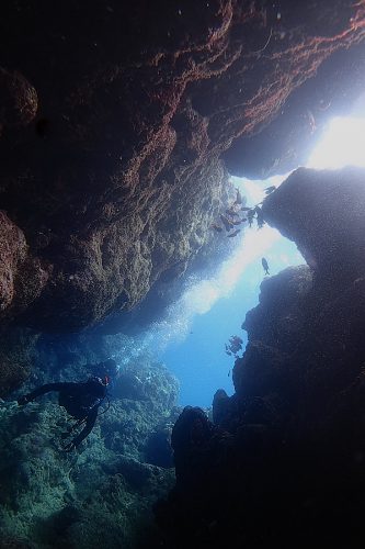 真栄田岬ではドロップオフを泳いだり、穴くぐったりと、、、