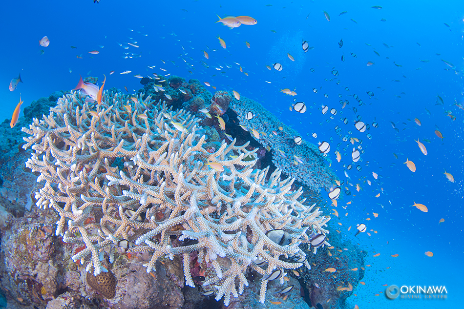 サンゴの周りにはスカシテンジクダイ、キンメモドキ、キンギョハナダイ、