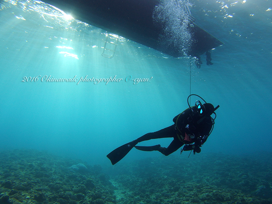 こんないい天気&海で無事記念DIVE!は、リピーターのOちゃんです。