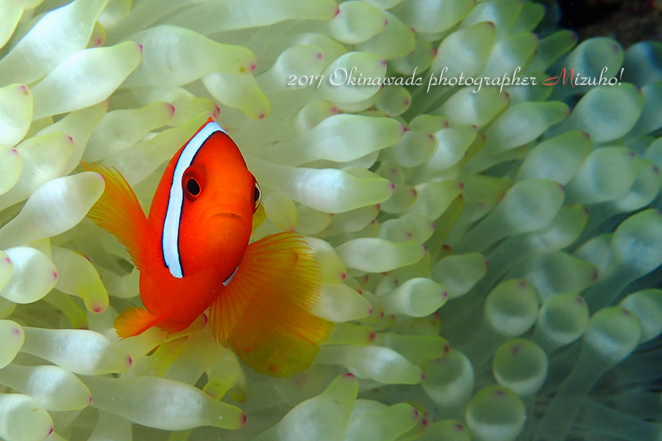 そしてまだまだタマイタダキイソギンチャクが真っ白な状態とハマクマノミの子供たちを発見ーっ!