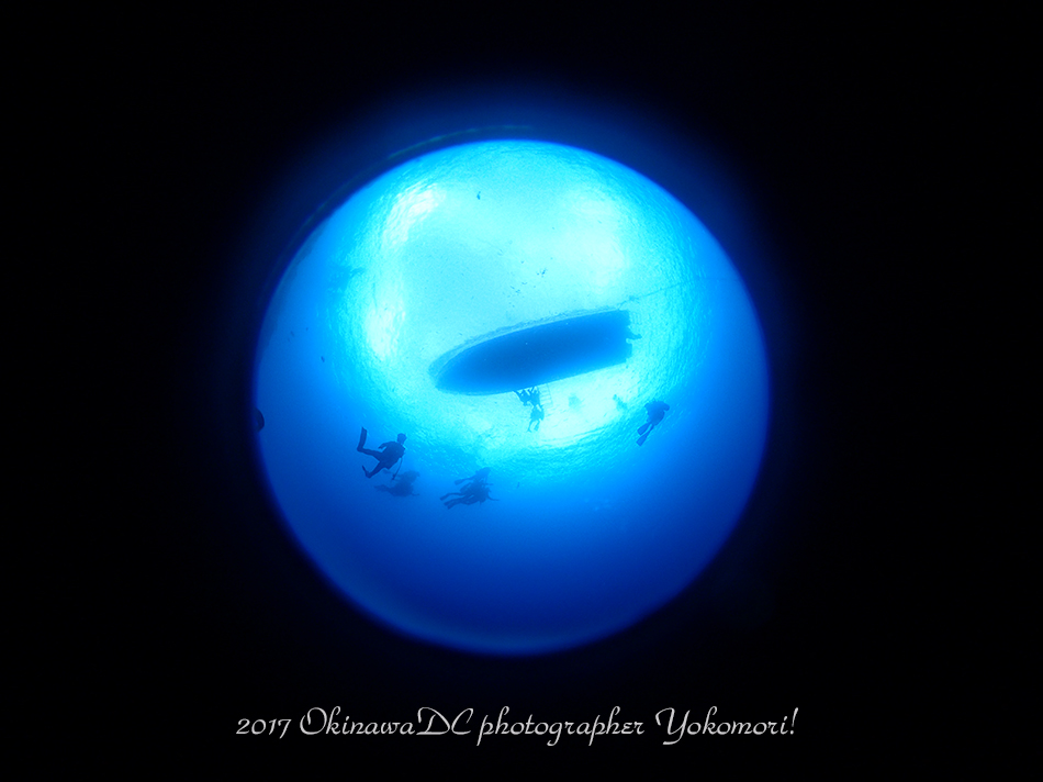 海の底から見上げるとボート・ダイバー・泡とワイドが気持ちがいいんだなー!