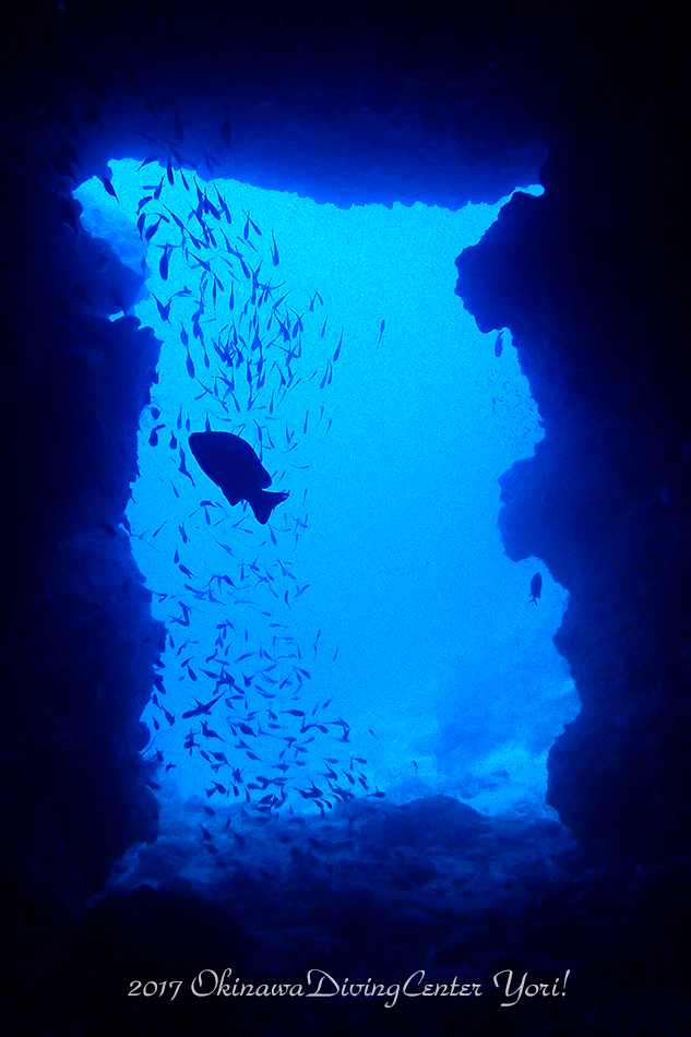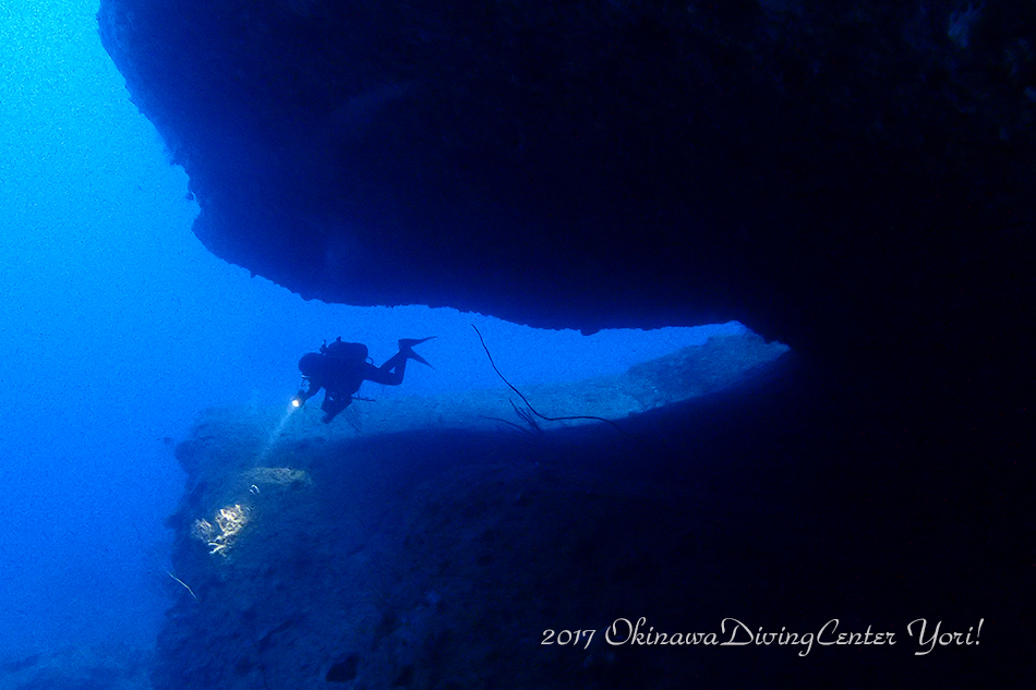 横穴に入り出口で撮影タイム、ミナミハタンポ、ダイバーをシルエットにしたりと熱い瞬間狙っていただきました。