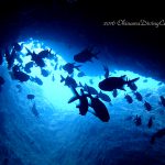 朝一でボートで真栄田に向かい、うねり残っていないかなぁ~と港を出たら、思いのほか穏やかな海況でよかったよかった。