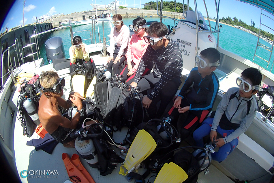 朝一でファンダイビング1本勝負で真栄田へ、船の上から見ても透明度が良いとわかるこの頃っ。