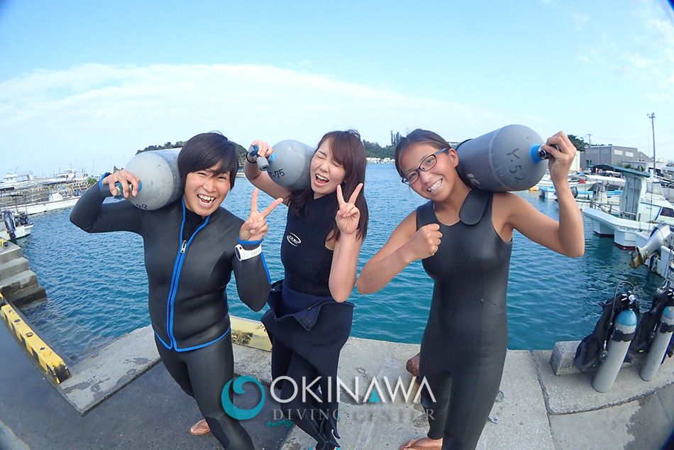 青空の下、軽々とタンクを持ち運ぶLadyたち!