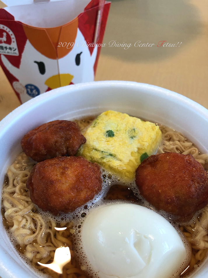 実はチキンラーメンが好きです。 それにから揚げ君、卵を乗せればトリプルチキンです。