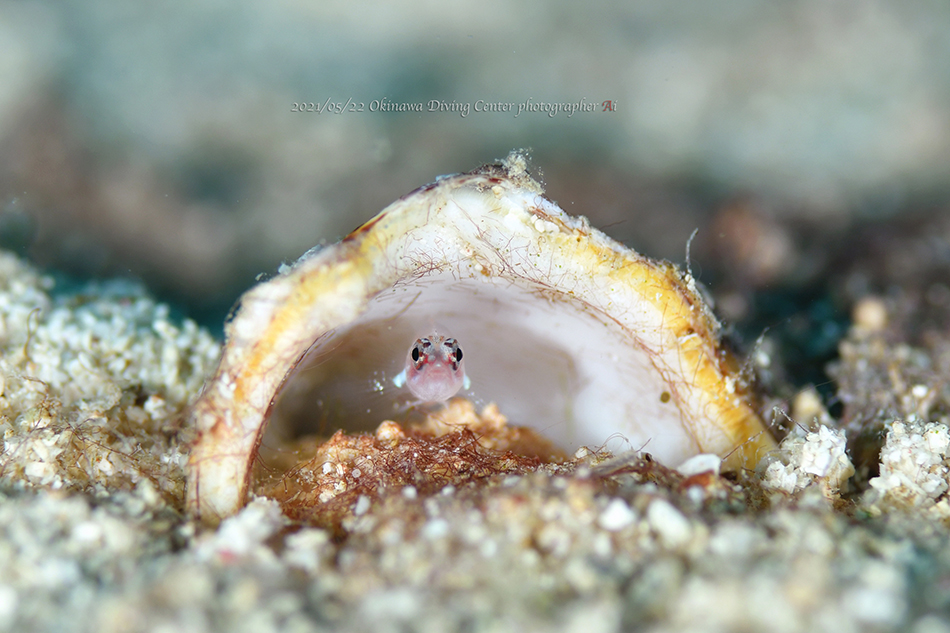 少し危険を察知すると割れた貝殻の隙間に逃げてこちらをうかがってます(笑)