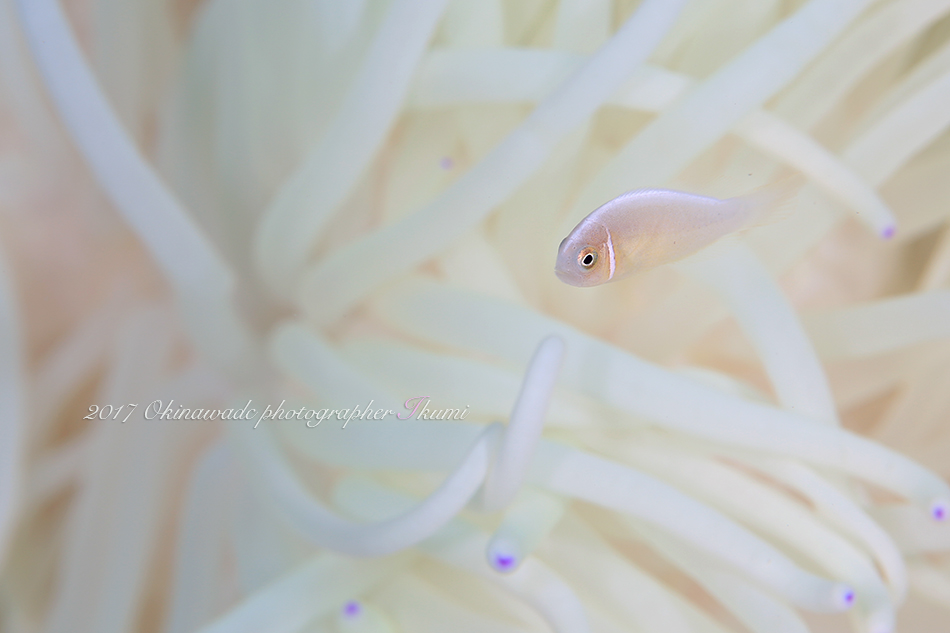白化してしまったシライトイソギンチャクに小さな子が! 嬉しいやら悲しいやらですがね。でも綺麗!