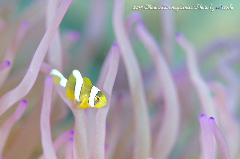 キレイなイソギンチャクに付いています!同じイソギンチャクには極小のアカホシカクレエビも沢山!