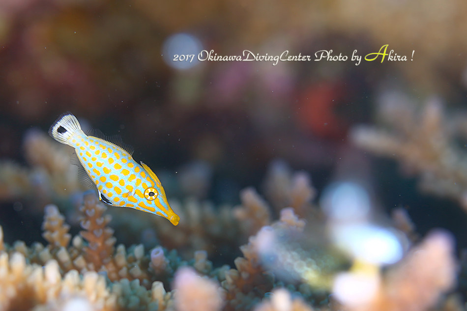 キレイなサンゴが多い万座のポイントはテングカワハギもよく見かけます!