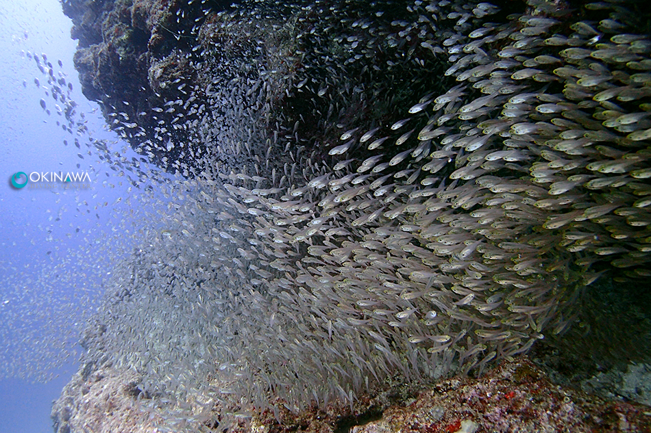 安全停止中にはイワシの大群で一面海の中がキラキラに!