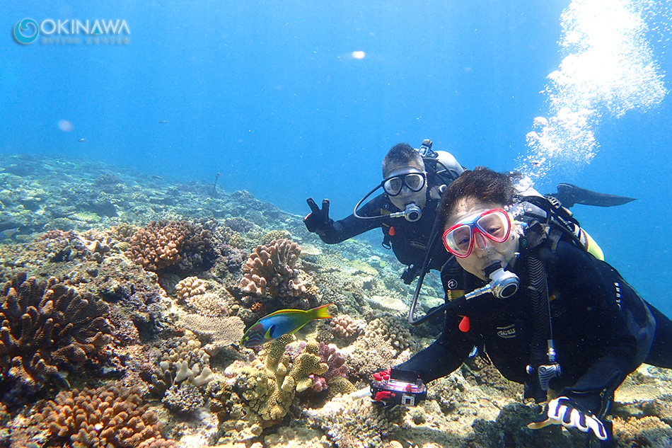 かおりチームは万座で2Dive!普段から沖縄の離島で潜られているT様お二人も大満足の透明度でした!!