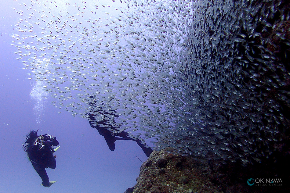 のんびりマクロ・・・なはずが、最後の安全停止では360°イワシに囲まれ、そのイワシを狙ってカスミアジ・スマの編隊が!