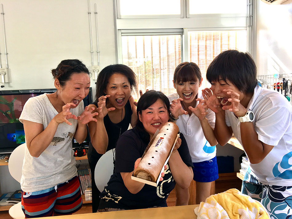 店でケーキタイム!!! 女子集合!!! そしておめでとーございます。