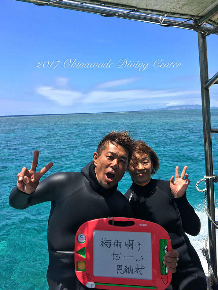 体験ダイビングでお越しになったゲストもテンション高目でお店に戻り「最高だわ!」と、その気持ち分かる分かる!! そしてマリさんは15年恩納村通って初めての「青の洞窟」だったそうで初体験を奪ってしまいました。