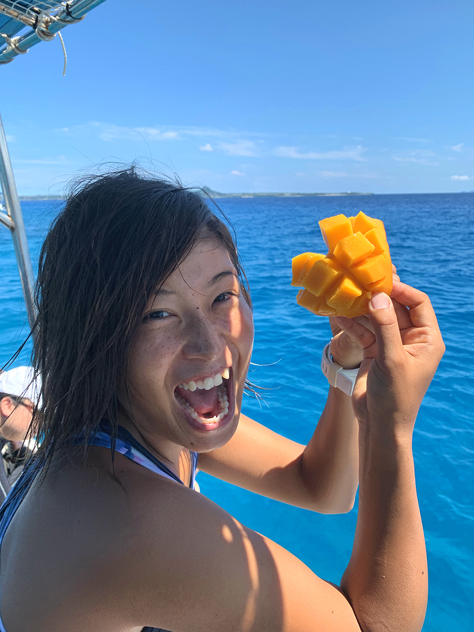 青い海に青い空! オレンジ色のマンゴーが美味しく輝くのだ!!