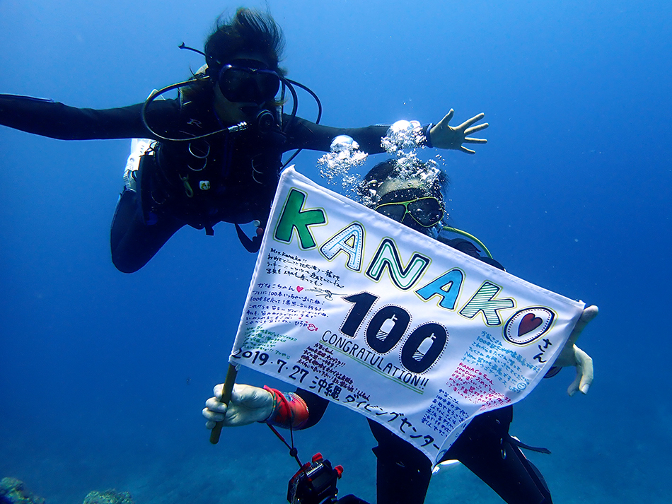 最高に透明度の良い中で水納島で二本、瀬底島ラビリンスで綺麗な光を堪能し無事に100本記念をする事が出来ました。 100本記念おめでとーーーーーーっ!! しかも下ろしたてのMy器材でルンルン♪♪
