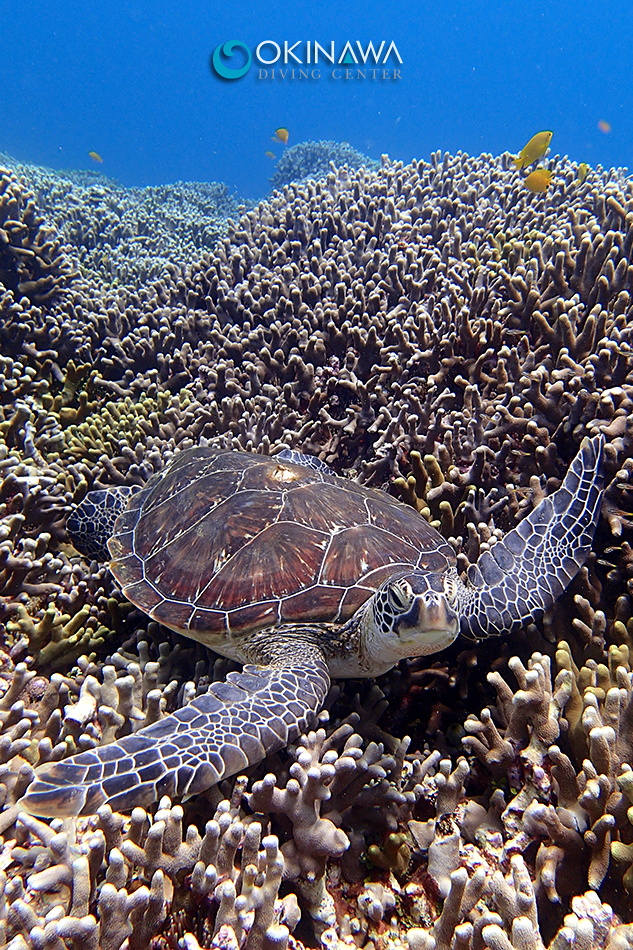 なかゆくいのユビエダハマサンゴにて休憩中のアオウミガメに遭遇~♪