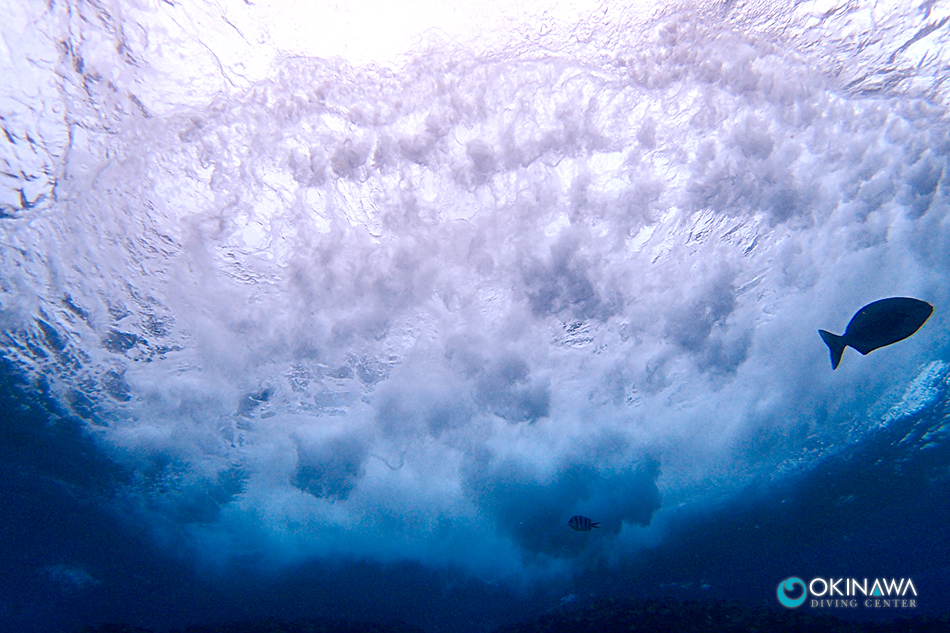 北風吹く中での真栄田岬は下からみる波が大迫力で楽しいです。