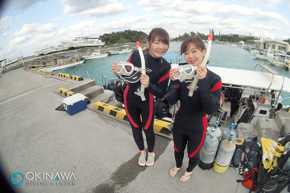 朝一はまだ波も高く、真栄田には行けませんでしたが、こちらは山田でシュノーケルの女子二人。