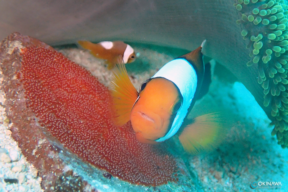 いろんなポイントのいろんなクマノミも育卵中だったり、オチビが混ざっていたり、お腹パンパンだったりと、、