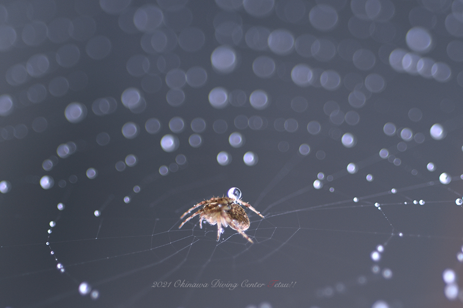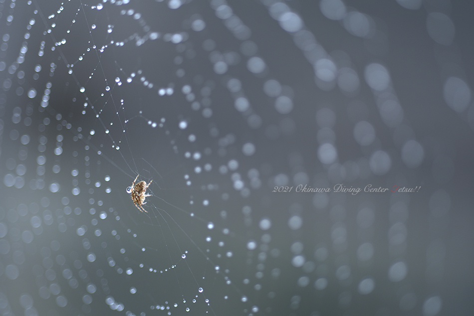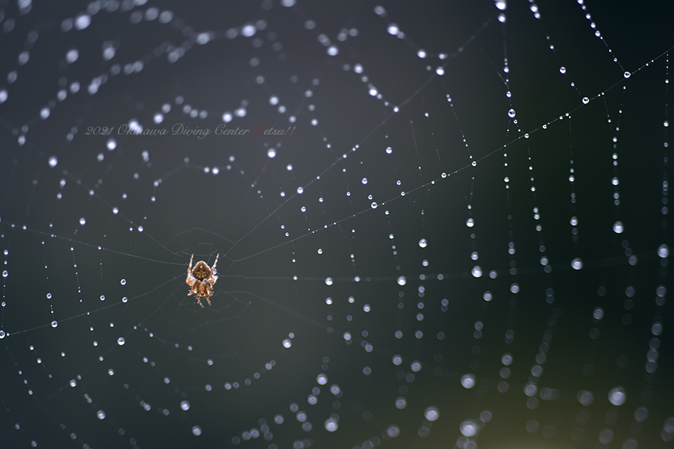 糸に付いた雫を見ながらも蜘蛛が作り出すアート?生きる為の知恵が生み出す正確な円に感動!