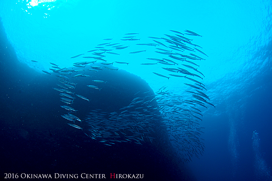 ホーシュー岩手前でかなりの数のカマスが渦を巻くように固まってまるでバラクーダ!