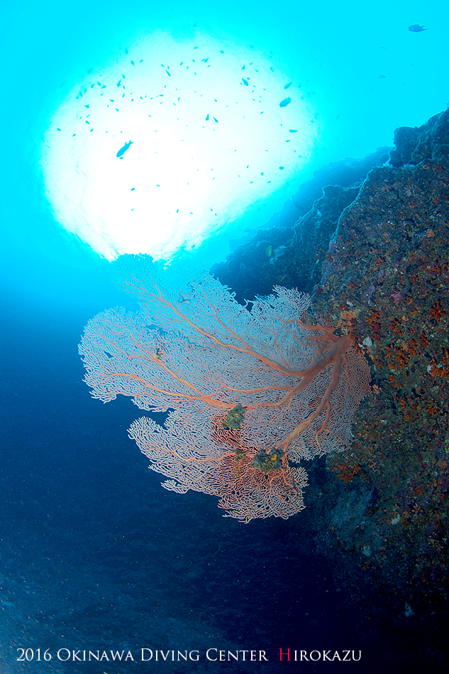 大きなウチワの前で写真を撮って、クレパスやアーチをくぐり抜け、カメを追っかけながらアドベンチャーダイブ終了。