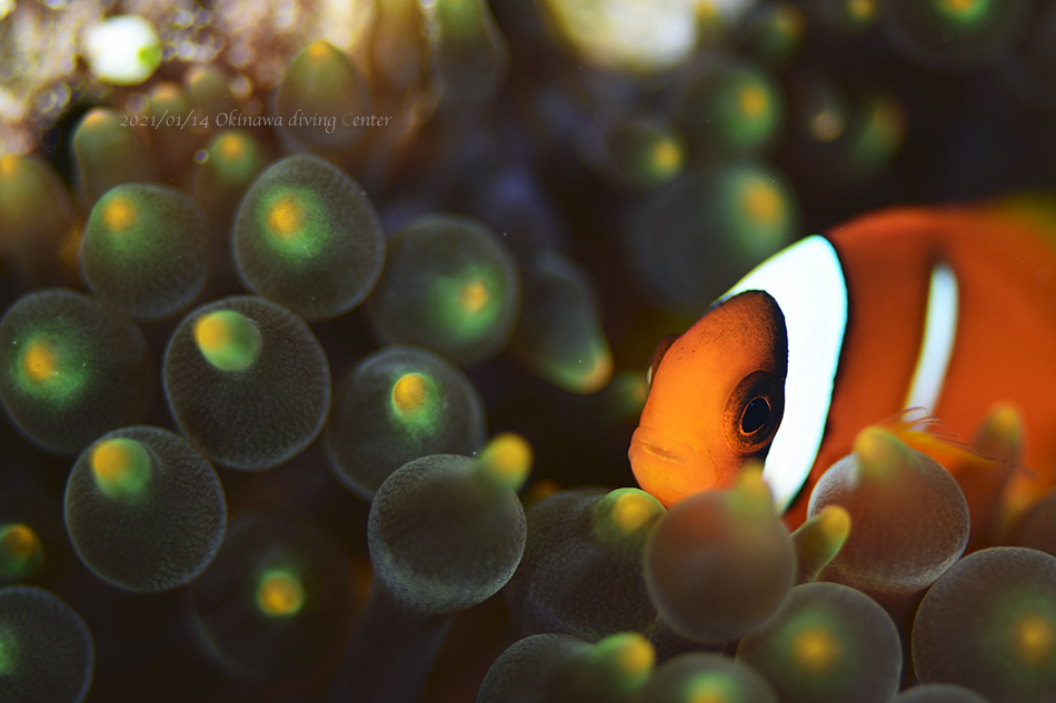 浅場のハマクマです、イソギンチャクから覗き込んでこっちの様子を見てくる姿が可愛いですね!